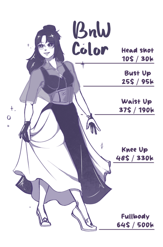 • Prices are for 1 character, +60% for each additional character added in the same artwork